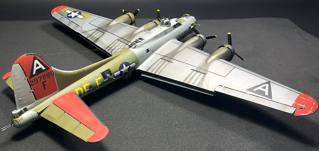 Este proyecto representa al icónico B-17G Flying Fortress en escala 1/72 de Revell, versión “Little Miss Mischief”, operado por la USAAF durante la Segunda Guerra Mundial. Desde la infancia me obsesionó este avión: su presencia robusta, sus historias de tripulación y mis lecturas con vistas explotadas me marcaron, y quise retomar el modelismo con él.