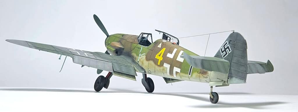 La intención fue lograr un modelo equilibrado: buen panelado, cabina trabajada y una pintura que respete las tonalidades RLM clásicas.