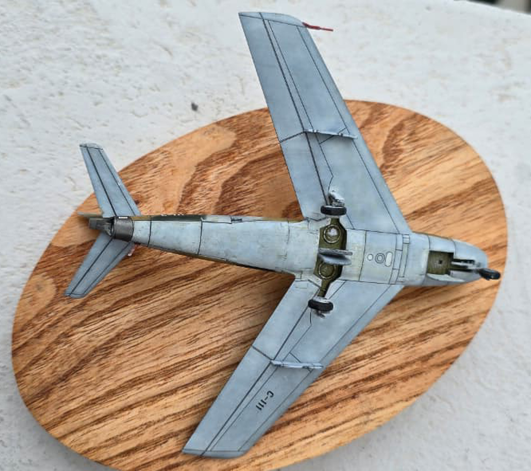 El proyecto se construyó a partir del kit Airfix en 1:72. Según Fede, los encastres son correctos y el panelado es uno de los puntos fuertes del molde. Sin embargo, la cabina y los pozos del tren llegan muy simplificados, algo habitual en esta marca.