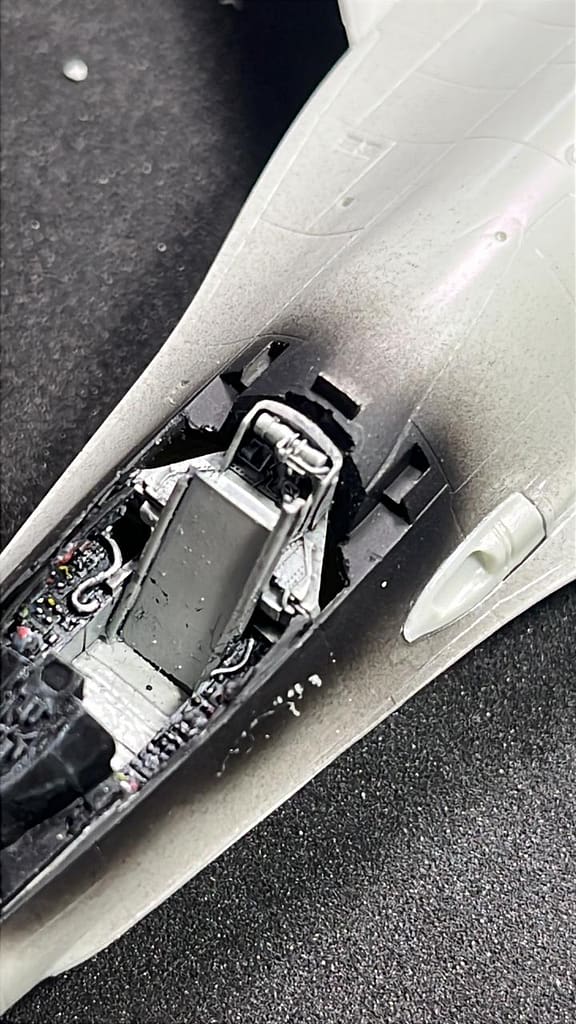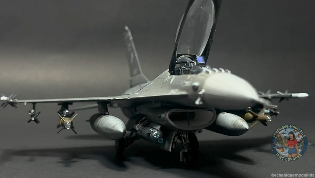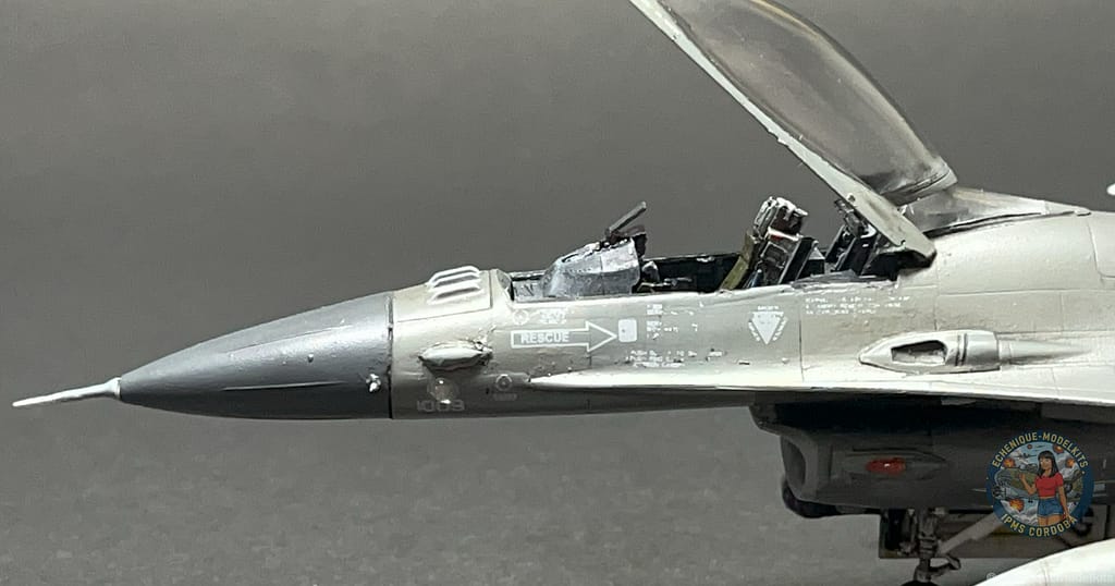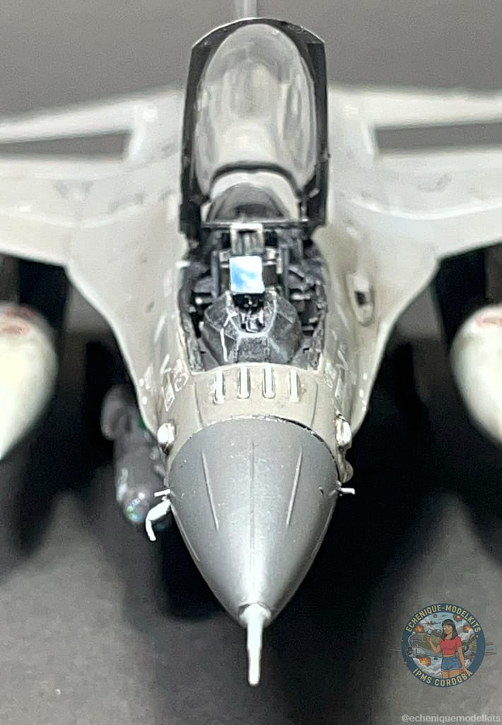 La boca del F-16 es un elemento icónico. Resolver la unión interna de las piezas de Revell fue un desafío de ingeniería creativa.