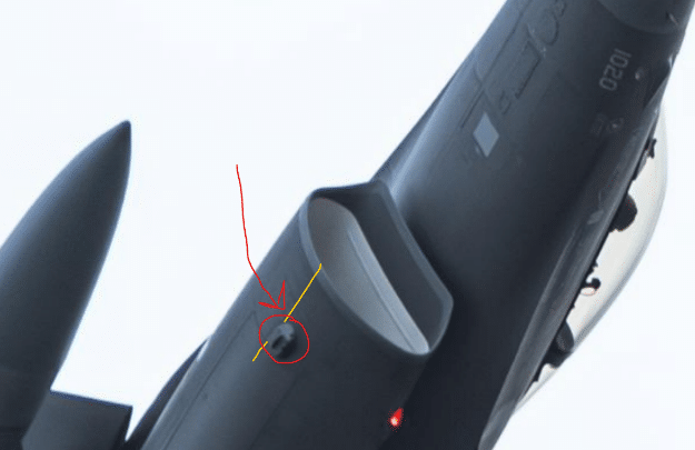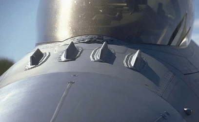 Lo primero a identificar es que todas las versiones F16 MLU tienen esta antenna IFF llamada “bird slicer” que tienen una forma rectangular con bordes en angulo diagonal. El color de ellos en los F16 recibidos es Light Ghost Gray (FS 36375).
