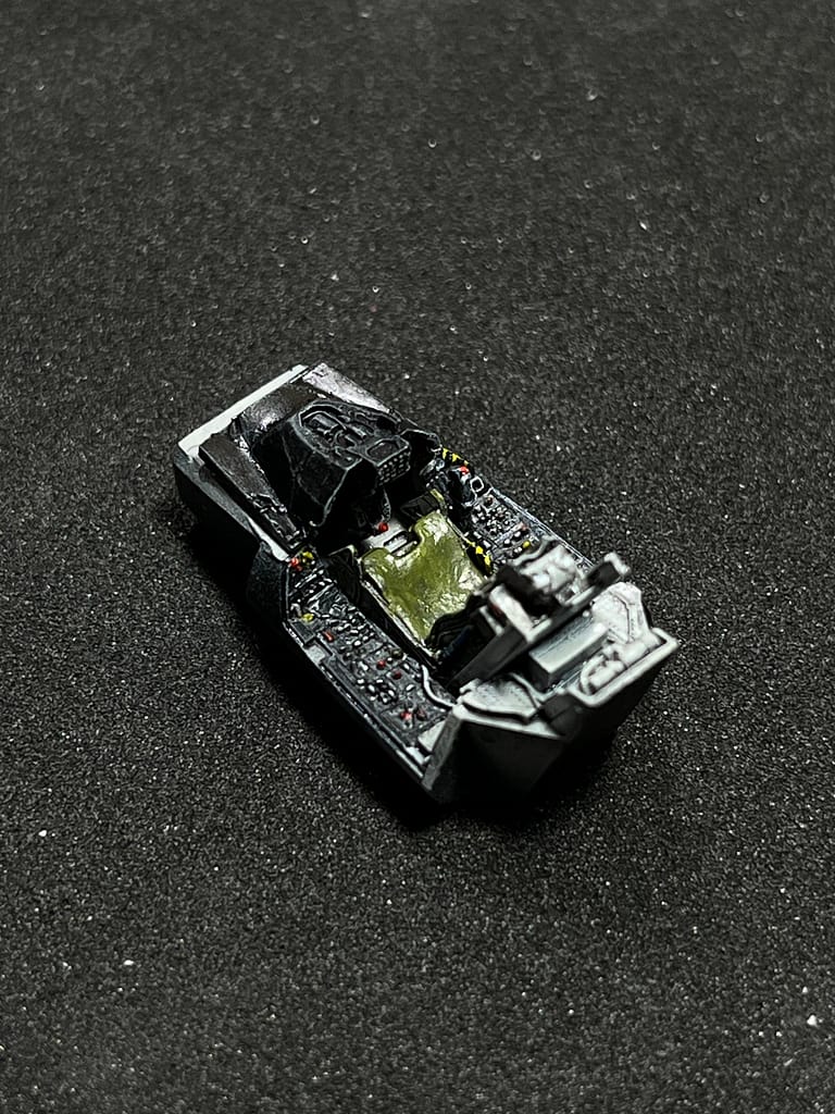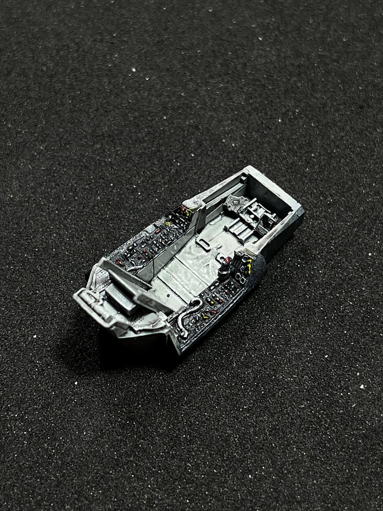 Se utilizaron impresiones en resina para trenes de aterrizaje, y resinas de set en toberas, cockpit completo y asientos eyectables.
