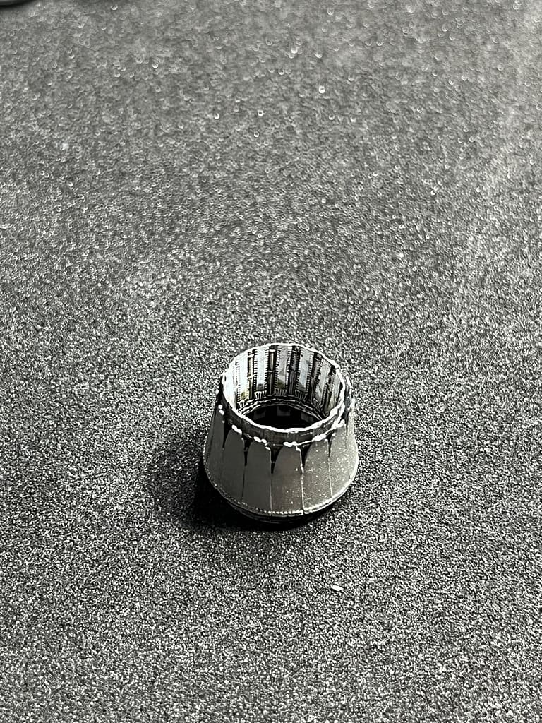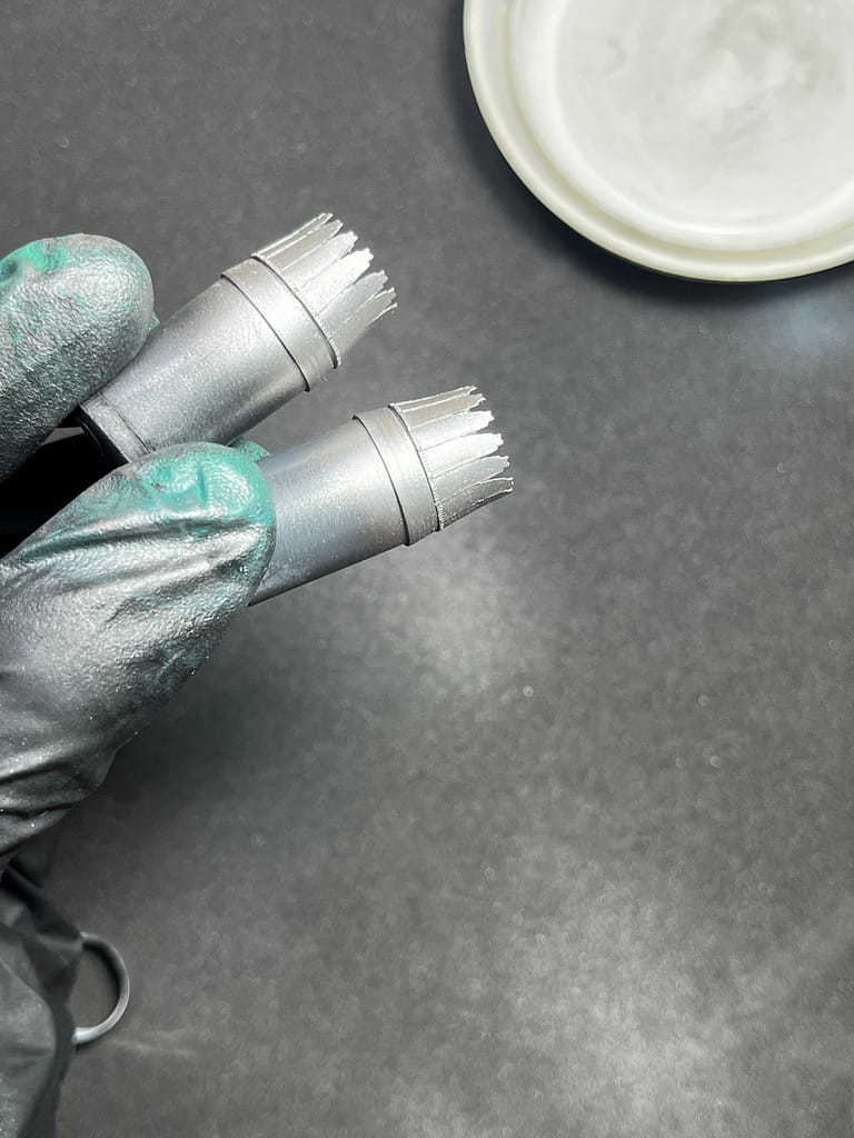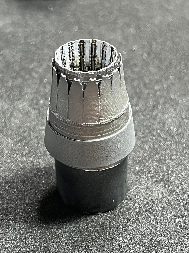 - Detallado de tobera: Pintura de los pétalos cerámicos del motor GE con matices metálicos.