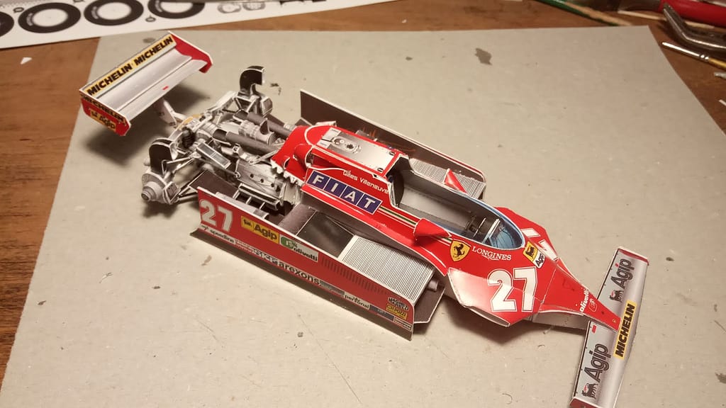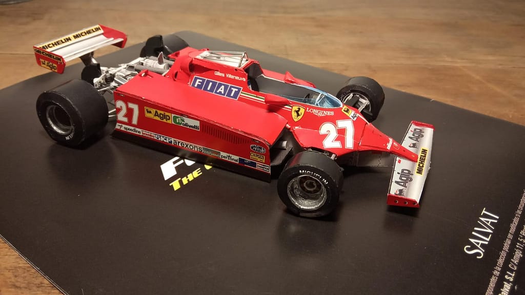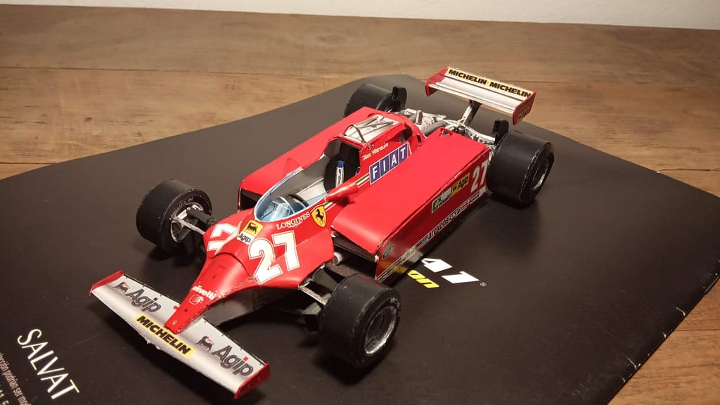 Durante la pandemia, decidí adentrarme en el mundo del papercraft, buscando representar autos simbólicos de la era dorada de la Fórmula 1, de los 70 y 80. Su elección fue la Ferrari 126 CK, pilotada por Gilles Villeneuve, destacada en el Gran Premio de Mónaco del 31 de mayo de 1981. Aunque este modelo no fue particularmente exitoso en el campeonato de ese año, Villeneuve logró imponerse en Mónaco y en Jarama, alcanzando el séptimo puesto en la clasificación general.
