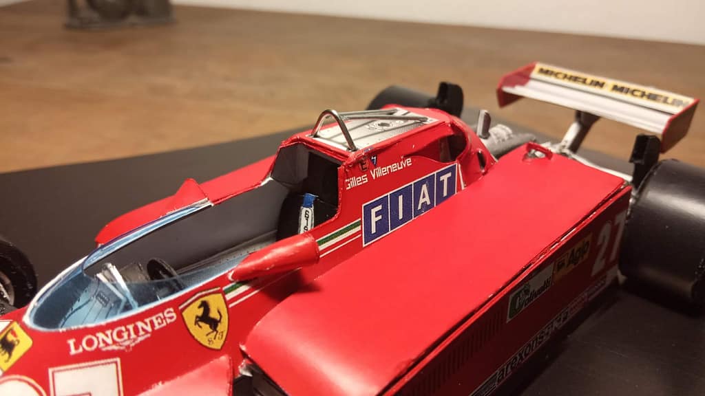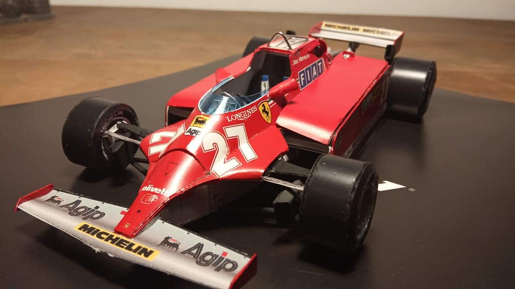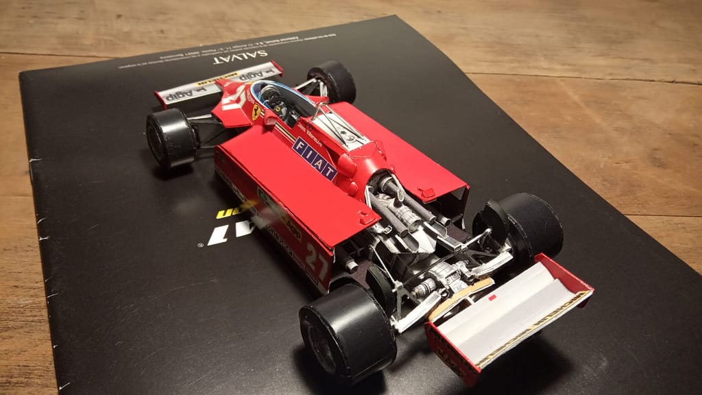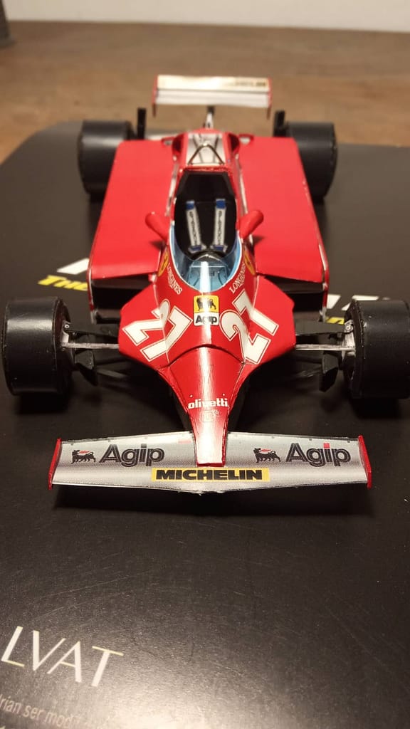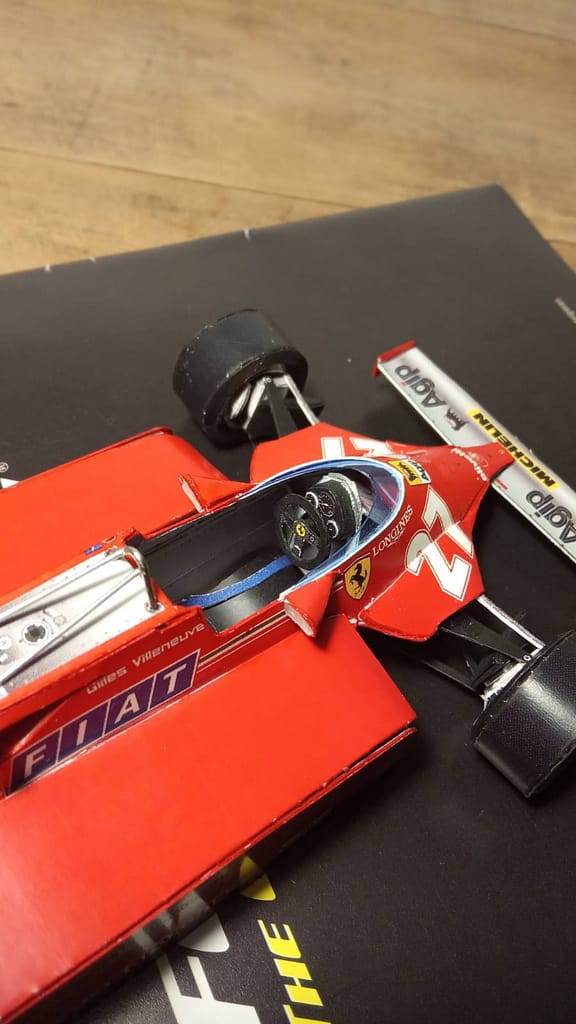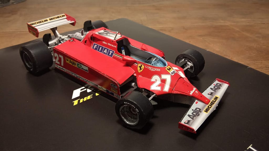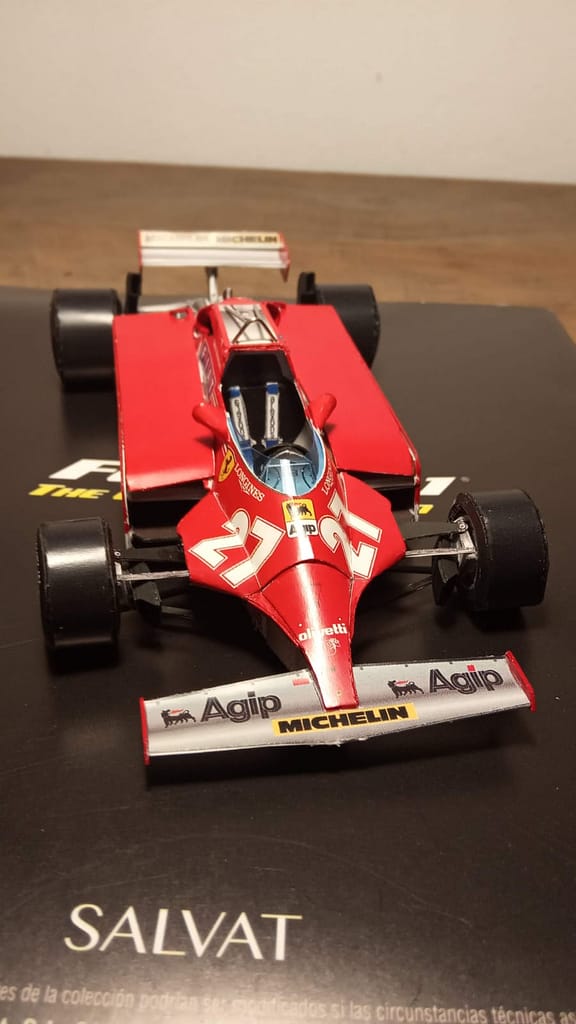 Esta maqueta representa la transición de Ferrari hacia los motores turbo, enfrentando desafíos técnicos y adaptaciones que marcarían la pauta en las temporadas siguientes. La complejidad del motor y las suspensiones hicieron de este proyecto un reto fascinante para mi.