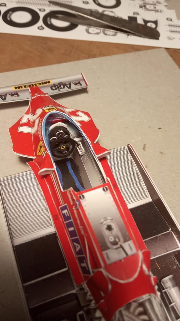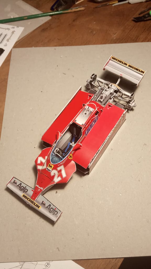 El aprendizaje principal fue el tratamiento de corte y plegado del papel, especialmente en el casco y el cockpit. El motor, aunque trabajoso, resultó en un producto final impresionante. Para futuros proyectos, tengo planeado construir autos de rally, incluyendo el Lancia Delta S4 y un Audi Quattro en papercraft.