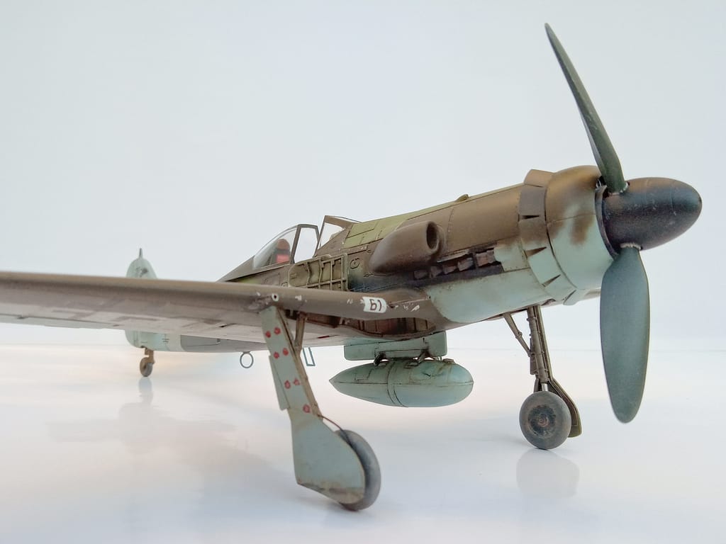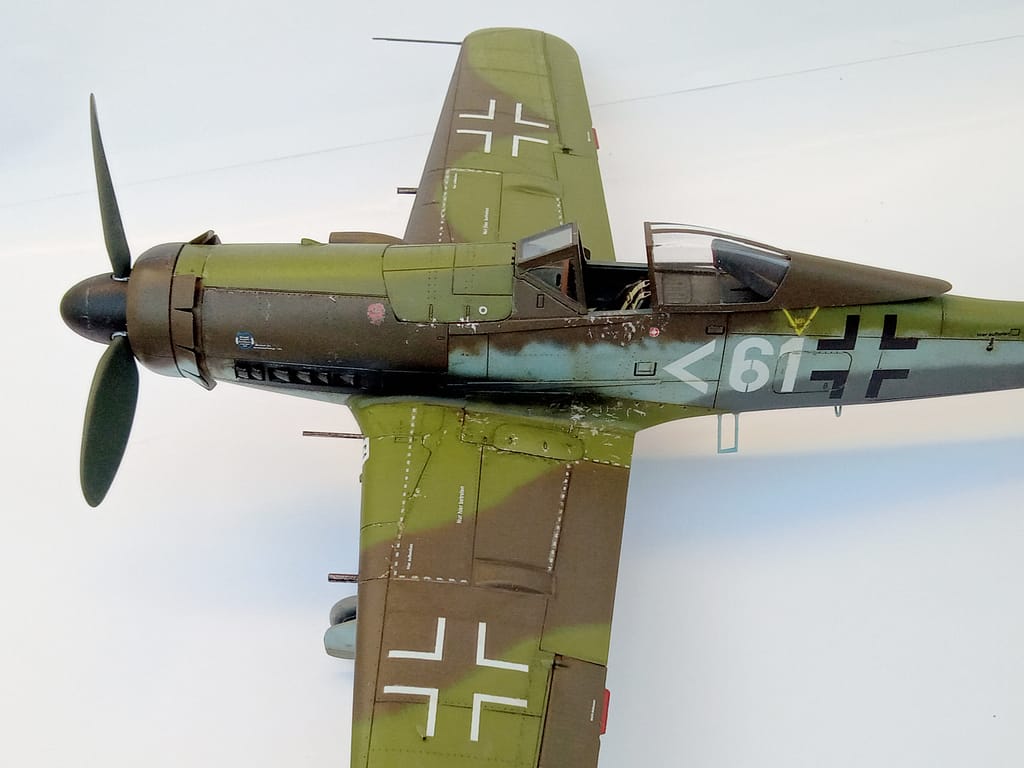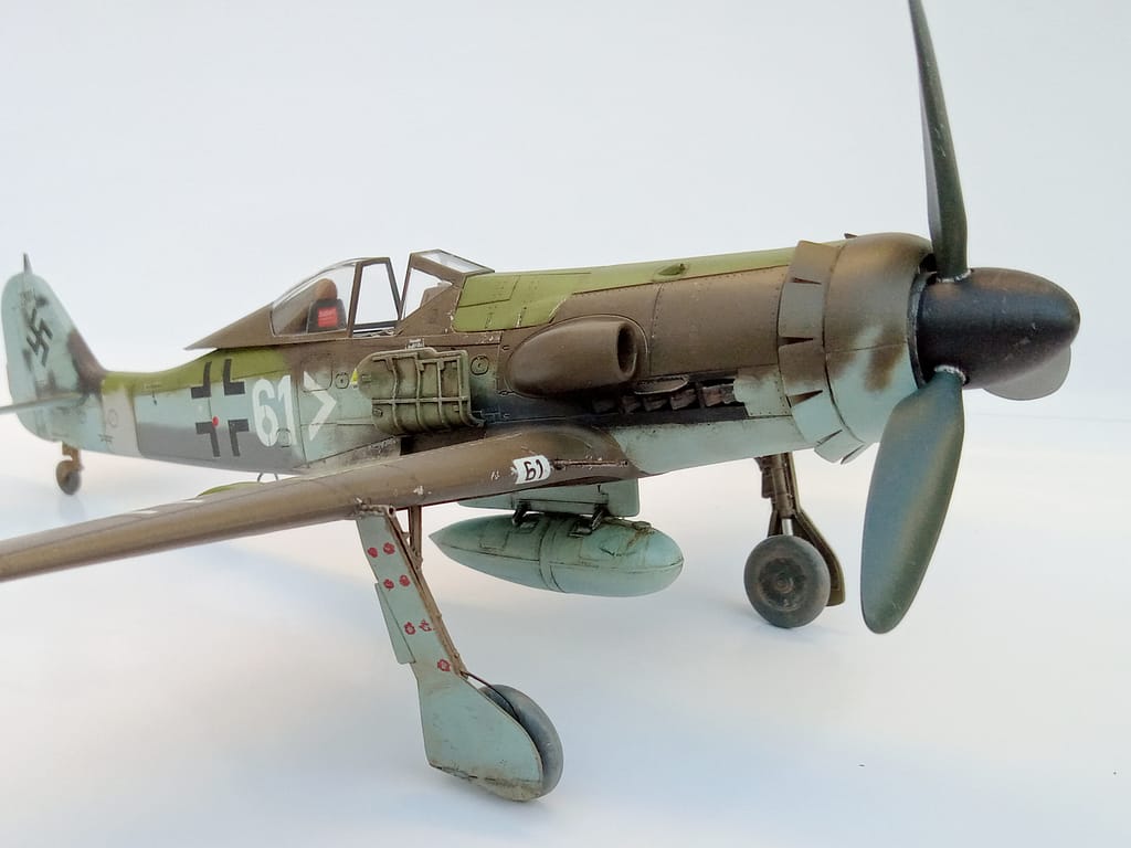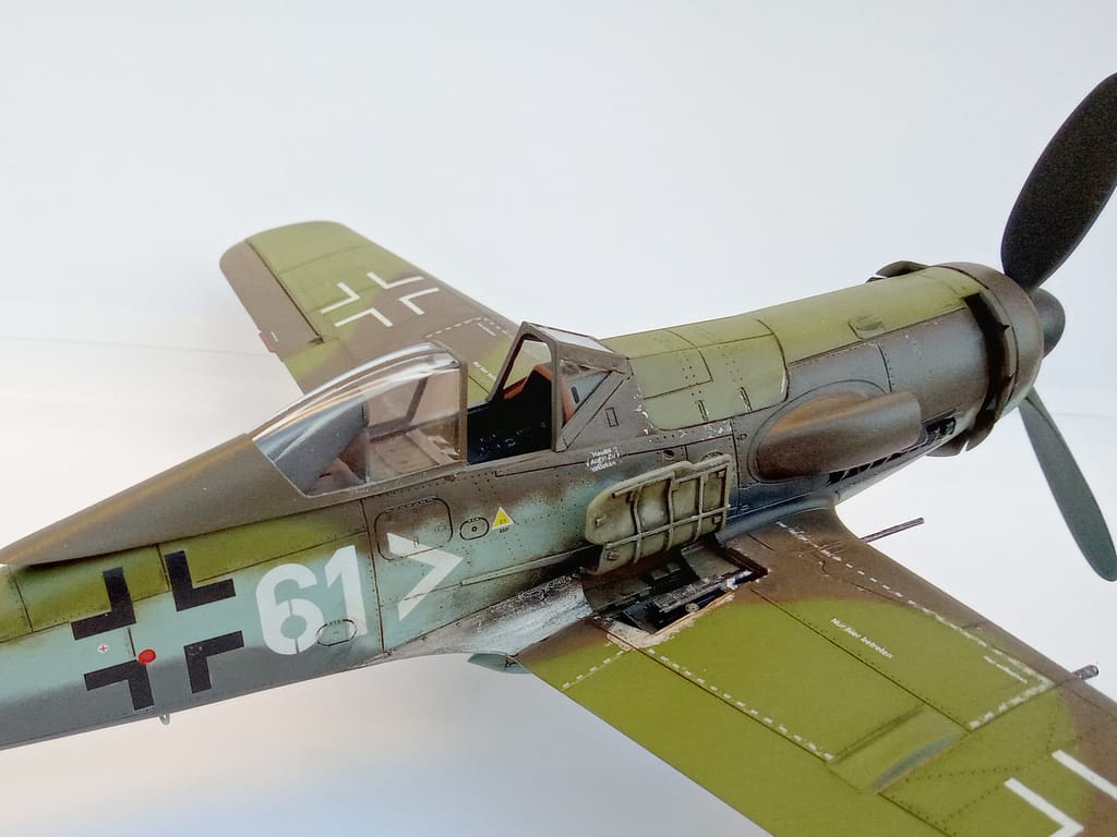 Los últimos pájaros carniceros… no es mi idea caer en la repetición, pero tiene un sentido personal, estos dos modelos fueron comenzados de forma paralela a principios del 2020. Y por esas idas y venidas de la vida cotidiana y modelistica, descansaron un buen tiempo en una caja, para ser terminados en distintos momentos. Así concluí con el fw190 D-11 a inicios del 2024, y el fw190 D-13, un año después. No obstante son tambien mis últimos “pajaros” de la Luftwaffe finalizados. El termino “butcher bird” (Wurger en Aleman) fue aplicado por los pilotos aliados a raíz de la desagradable sorpresa que fue para ellos encontrarse en los cielos europeos con las primeras versiones del Fw190. En esa época utilizaban el motor radial BMW 801, para posteriormente evolucionar a la versión D-9 con motor en linea invertida, y finalmente concluir en las variantes que expongo en este articulo, equipadas con el motor en línea Junkers Jumo 213 E.