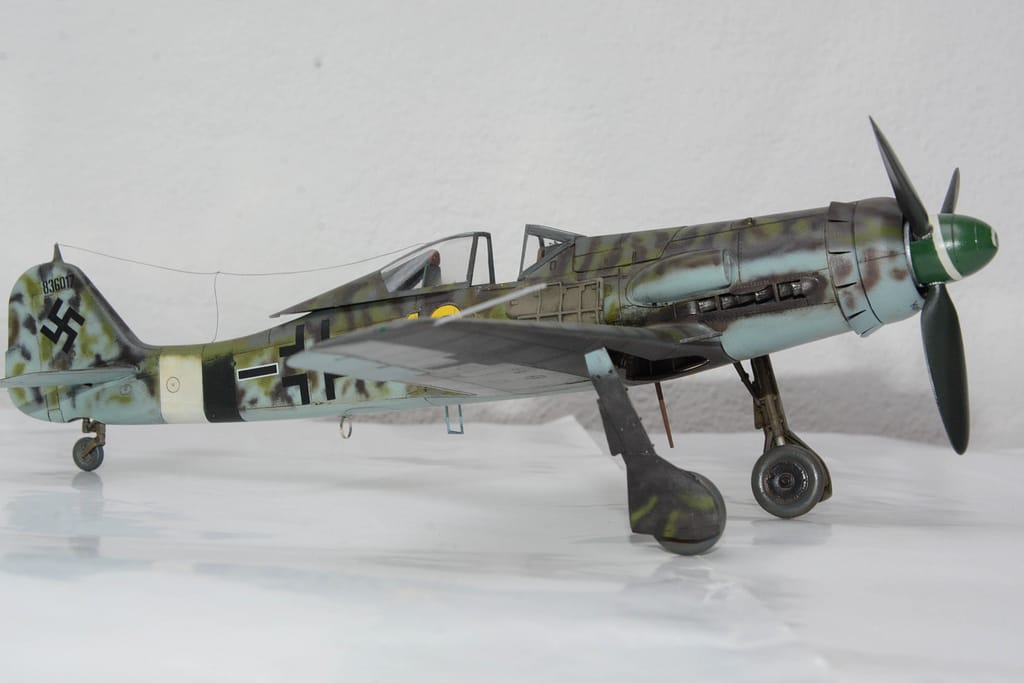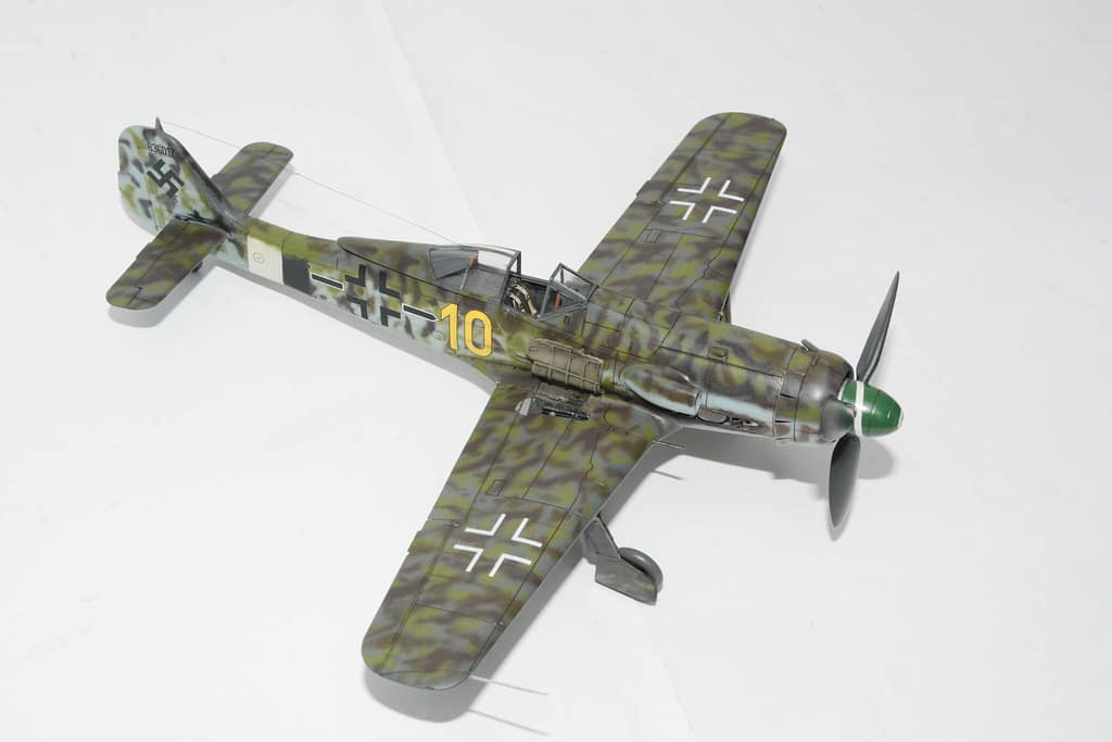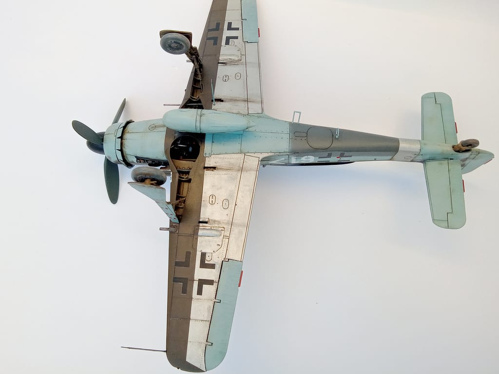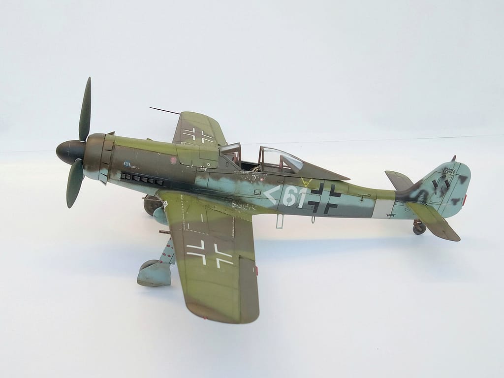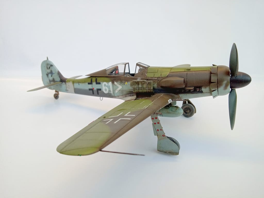 Los últimos pájaros carniceros… no es mi idea caer en la repetición, pero tiene un sentido personal, estos dos modelos fueron comenzados de forma paralela a principios del 2020. Y por esas idas y venidas de la vida cotidiana y modelistica, descansaron un buen tiempo en una caja, para ser terminados en distintos momentos. Así concluí con el fw190 D-11 a inicios del 2024, y el fw190 D-13, un año después. No obstante son tambien mis últimos “pajaros” de la Luftwaffe finalizados. El termino “butcher bird” (Wurger en Aleman) fue aplicado por los pilotos aliados a raíz de la desagradable sorpresa que fue para ellos encontrarse en los cielos europeos con las primeras versiones del Fw190. En esa época utilizaban el motor radial BMW 801, para posteriormente evolucionar a la versión D-9 con motor en linea invertida, y finalmente concluir en las variantes que expongo en este articulo, equipadas con el motor en línea Junkers Jumo 213 E.