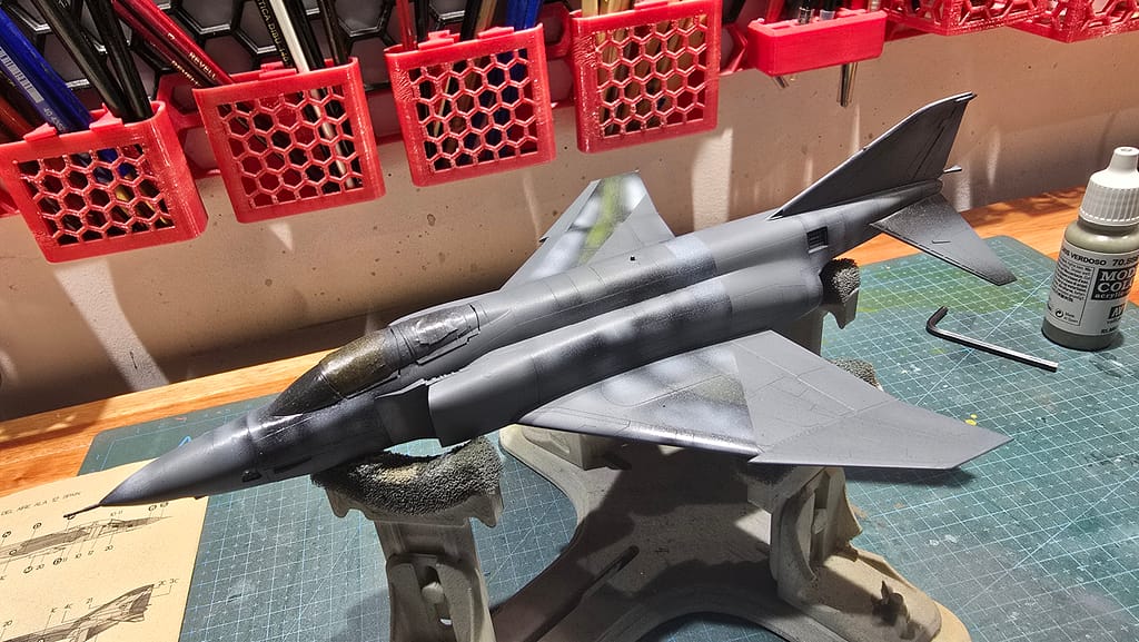 El modelo base, originalmente un ESCI RF-4E Phantom II, es un molde clásico que, pese a su antigüedad, conserva buenas proporciones y líneas generales muy correctas. Su encastre es aceptable, aunque presenta algunos ajustes típicos de la época en la unión de alas y fuselaje.