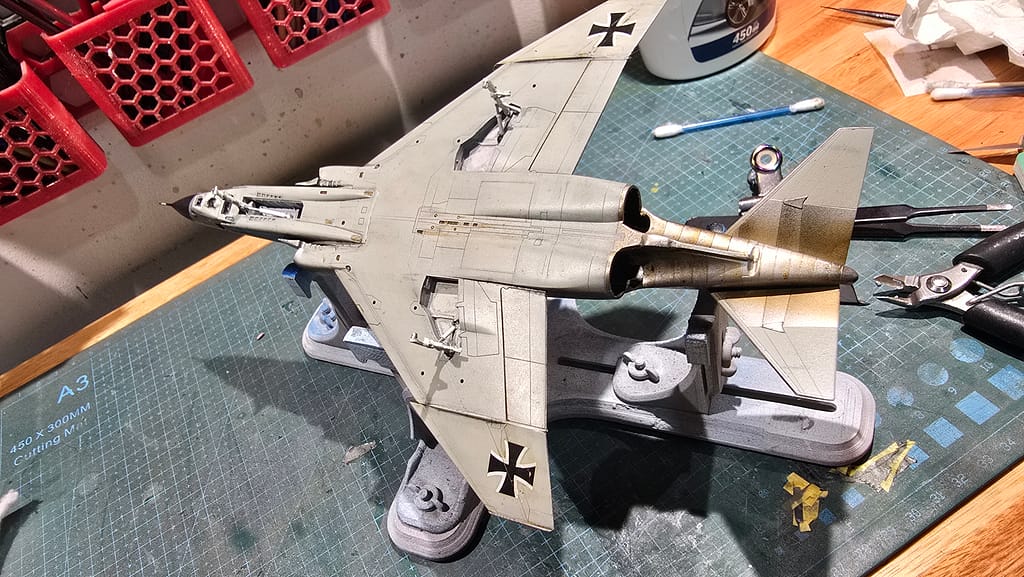 Este F-4F Phantom II de la Luftwaffe reproduce a escala uno de los cazas más emblemáticos de la Guerra Fría. Fue construido a partir del kit ESCI No. 9029 en escala 1/72, combinando técnicas mixtas de aerógrafo y pincel, e incorporando una reconstrucción 3D de los trenes de aterrizaje principales, realizada para reemplazar los que se perdieron ya que el kit fue adquirido usado.