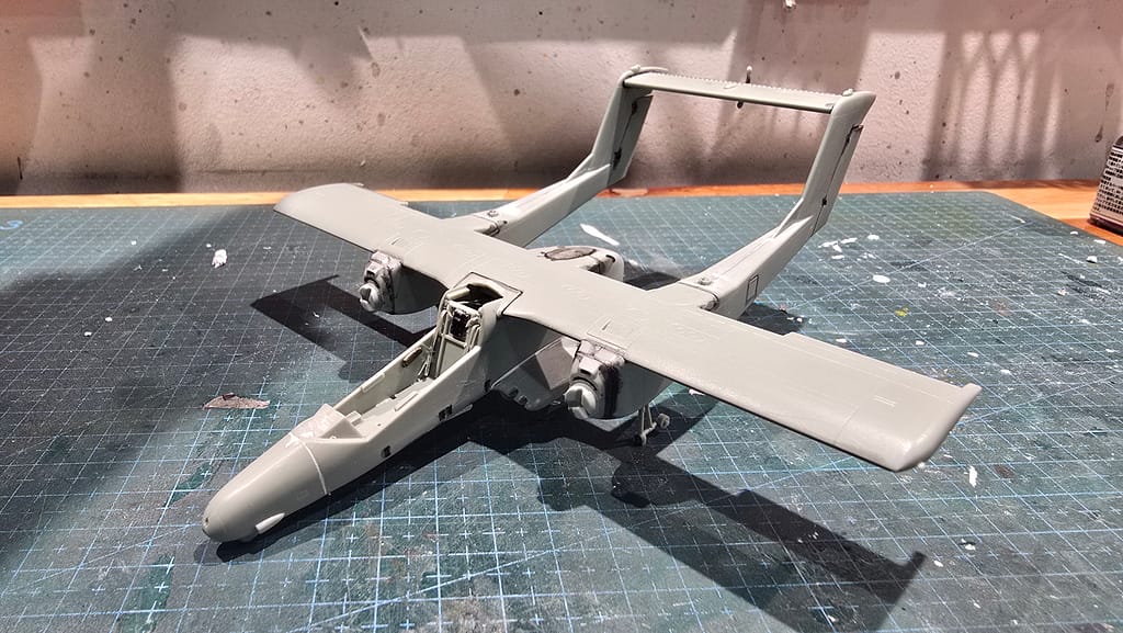 El kit de Academy representa el OV‑10D “Desert Storm”, una variante modernizada del Bronco con nariz extendida, FLIR y mejoras propias del programa NOGS. Se trata de un rebox con piezas nuevas derivado del OV‑10A de la misma marca.