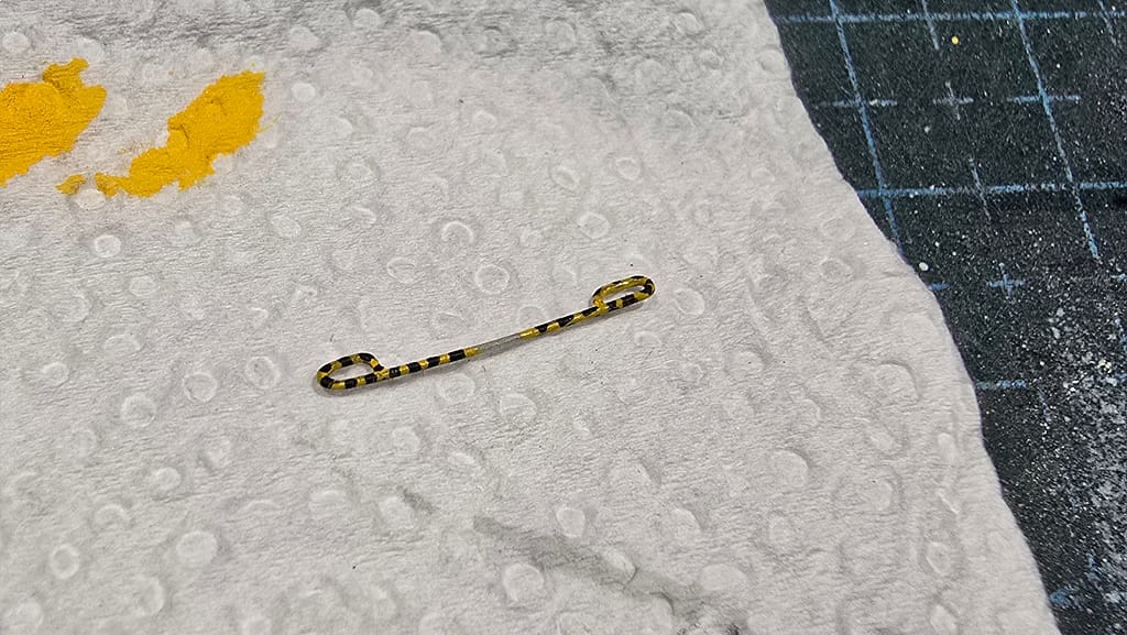 Durante el proceso también me dediqué a remarcar todo el remachado del avión usando una herramienta especial de rueda. Antes de la imprimación repasé alas, fuselaje y botalones con pasadas firmes y guiadas con cinta para mantener la línea. El objetivo era que, una vez aplicada la base negra y la modulación, cada hilera de remaches quedara insinuada de forma sutil, aportando textura y realismo sin exagerar.