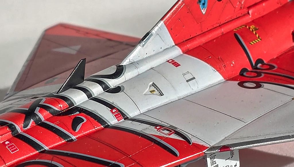 Le hice scratch a las bahías de tren y a los trenes mismos, y también fabriqué los FOD covers de las tomas de aire, que le dan un toque distinto al modelo terminado. No tuve que corregir nada del molde, pero sí puse mucha atención en el enmascarado, tratando de ser lo más preciso posible, porque este esquema no perdona errores.