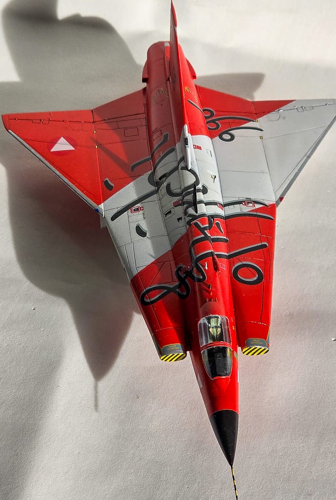 Elegí armar este Saab J-35J “Draken” porque, para mí, es un clásico absoluto de la aviación. Siempre me llamó la atención su diseño tan particular, y además no es un modelo que se vea seguido en las mesas de exhibición. Eso ya lo hacía especial.