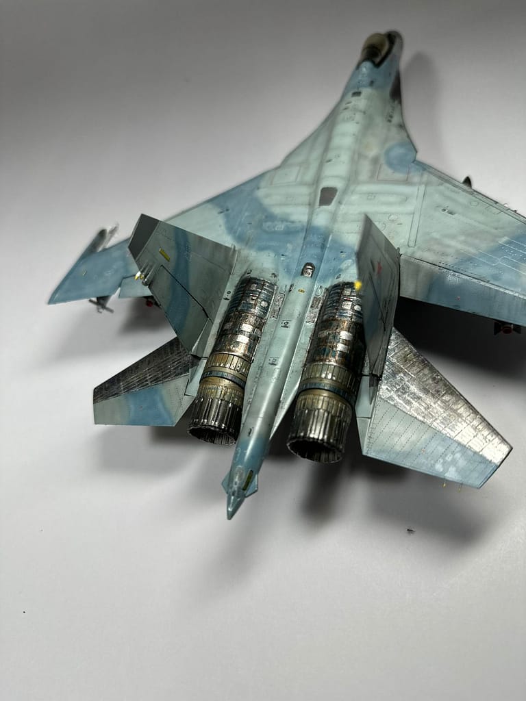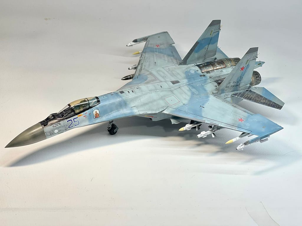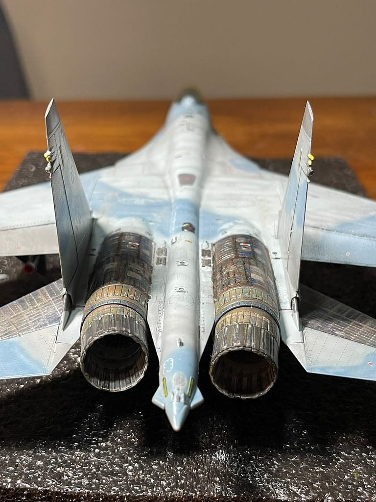 Me dejó muy conforme tanto en armado como en pintura. Creo que logré transmitir esos tonos metálicos particulares del SU-35, con una presencia general que buscaba desde el inicio. Este proyecto me motivó a intentar uno en 1/48 más adelante para explotar aún más el detalle.