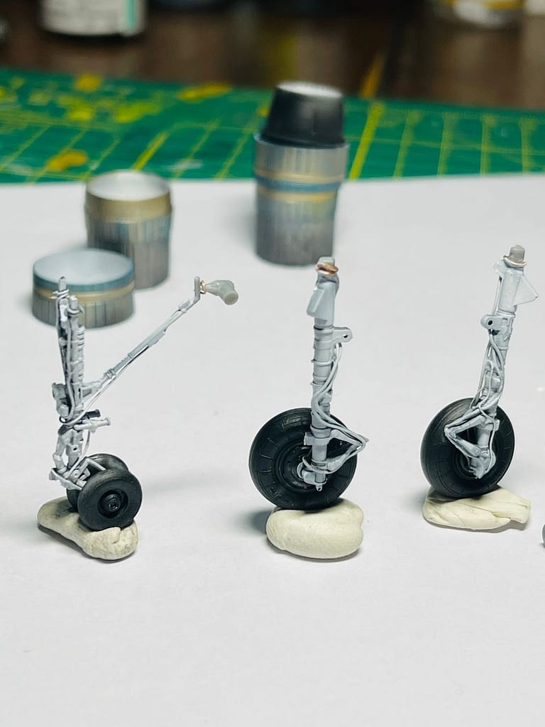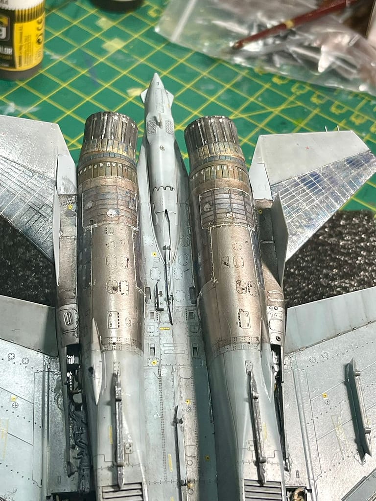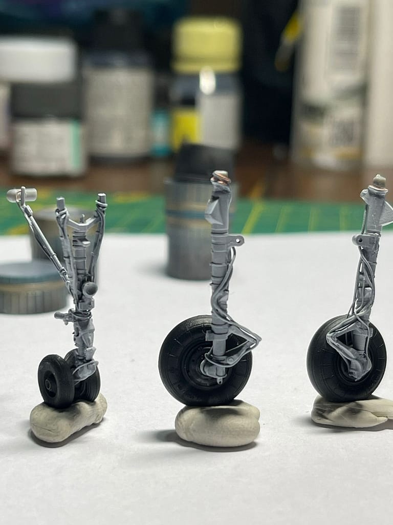 No incluí base ni diorama: quería que el avión fuera protagonista. Las fotos destacarán el tratamiento de las turbinas, las variaciones del camuflaje y los detalles agregados en los trenes.
