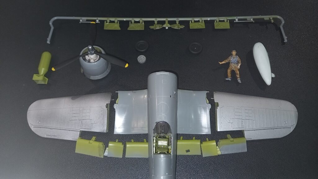 El kit… un modelo clásico en escala 1:48 de Tamiya, es altamente recomendable, cada pieza tiene un encastre perfecto, aunque hay zonas que requieren atención especial, como el sistema de alas plegables.
