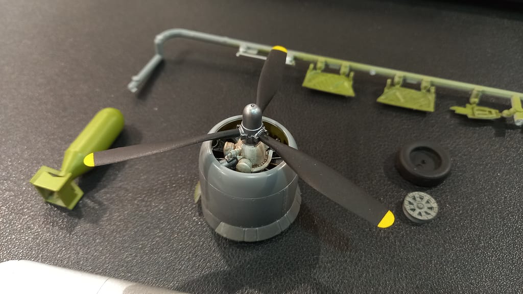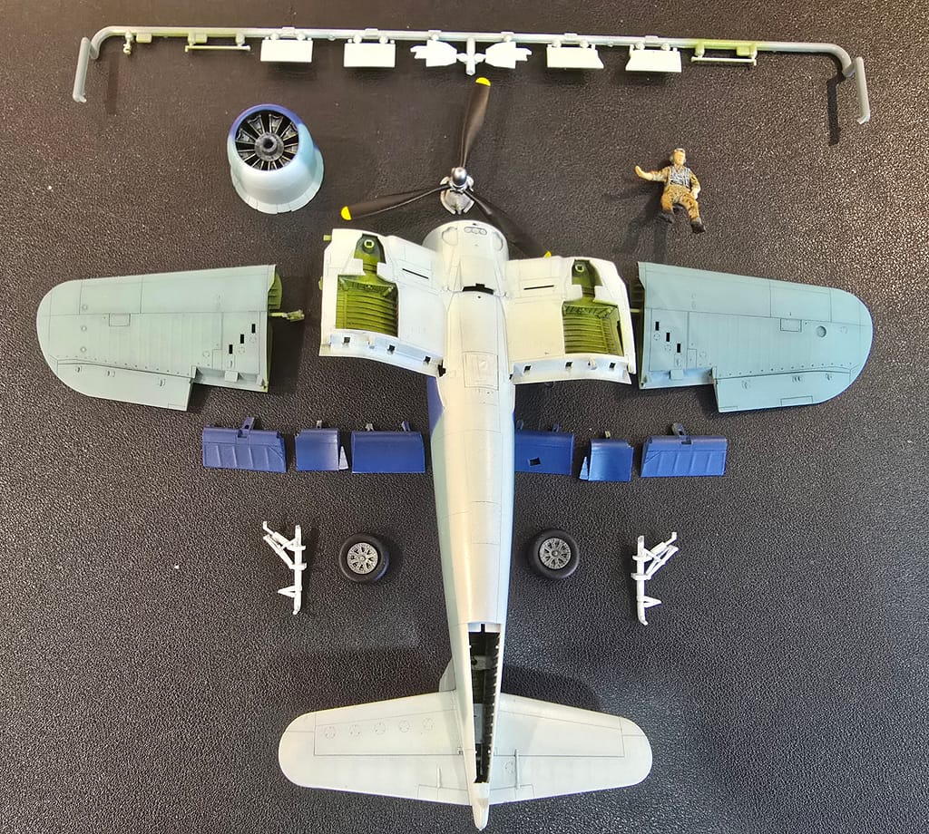El kit… un modelo clásico en escala 1:48 de Tamiya, es altamente recomendable, cada pieza tiene un encastre perfecto, aunque hay zonas que requieren atención especial, como el sistema de alas plegables.